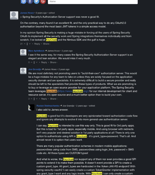 댓글에는 KeyCloak이 언급되고 있네요