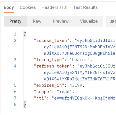 위에서 발급된 리프레쉬 토큰을 넣어줍니다.