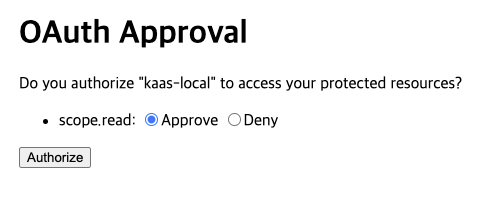 현재 scope를 지정했기 때문에 승인하는 페이지가 뜹니다. 인증 해줍니다.