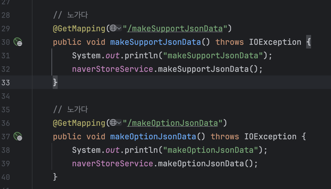 Controller에서는 내가 원하는 서비스들을 호출만 하였다.