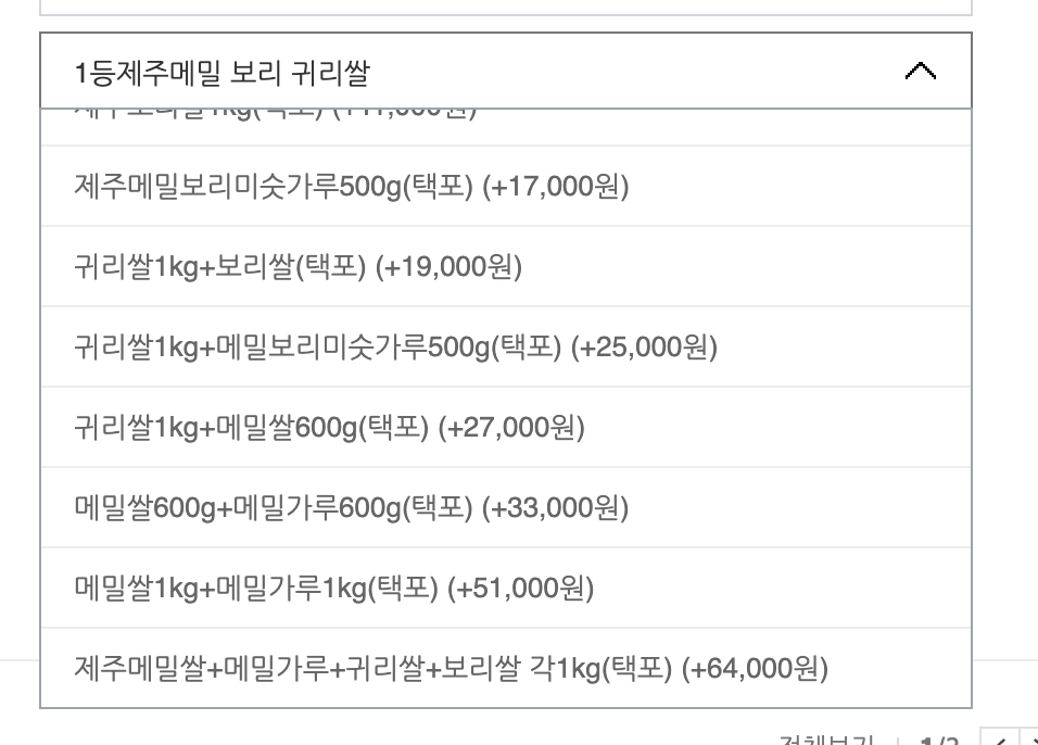 "title" : "1등제주메밀 보리 귀리쌀: 귀리쌀1kg+보리쌀(택포)"