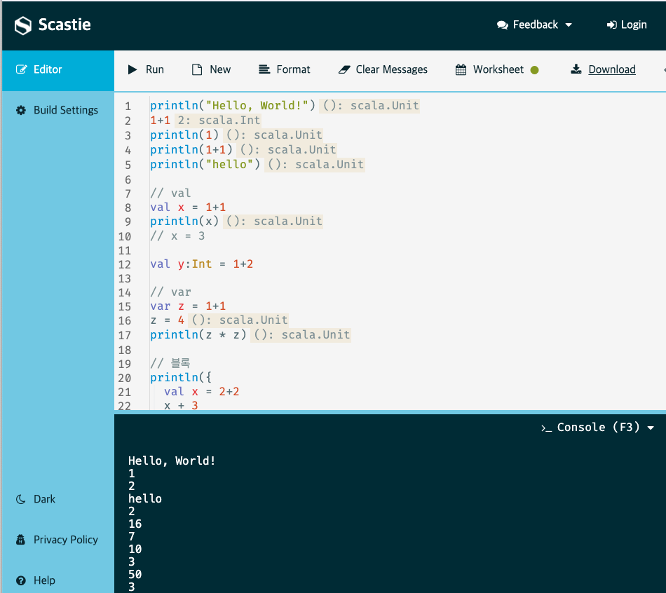 guide doc : https://docs.scala-lang.org/tour/tour-of-scala.html