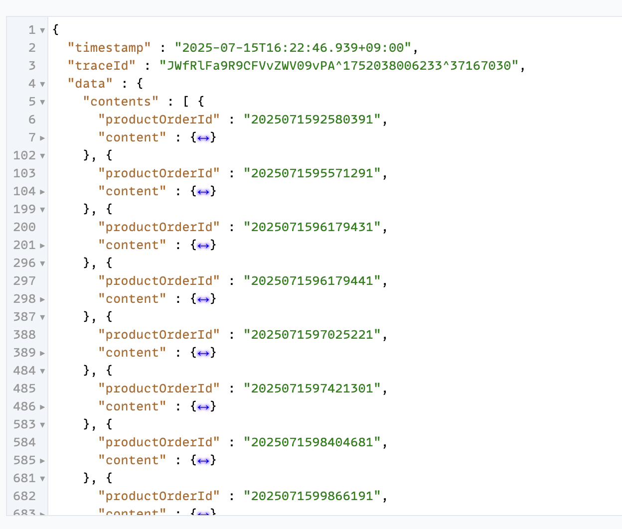 상품주문번호 : content > productOrder > productOrderId : 2025071650255171
