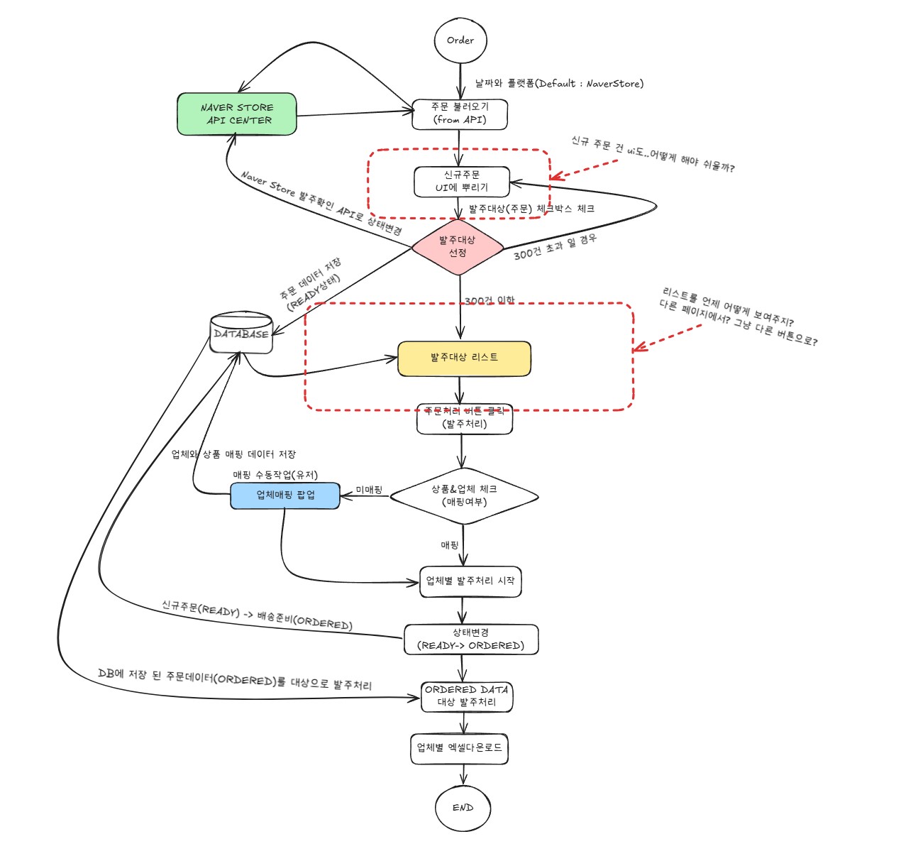 발주 대상을 모아주는 처리와 발주를 처리 하는 부분을 따로 개발?
