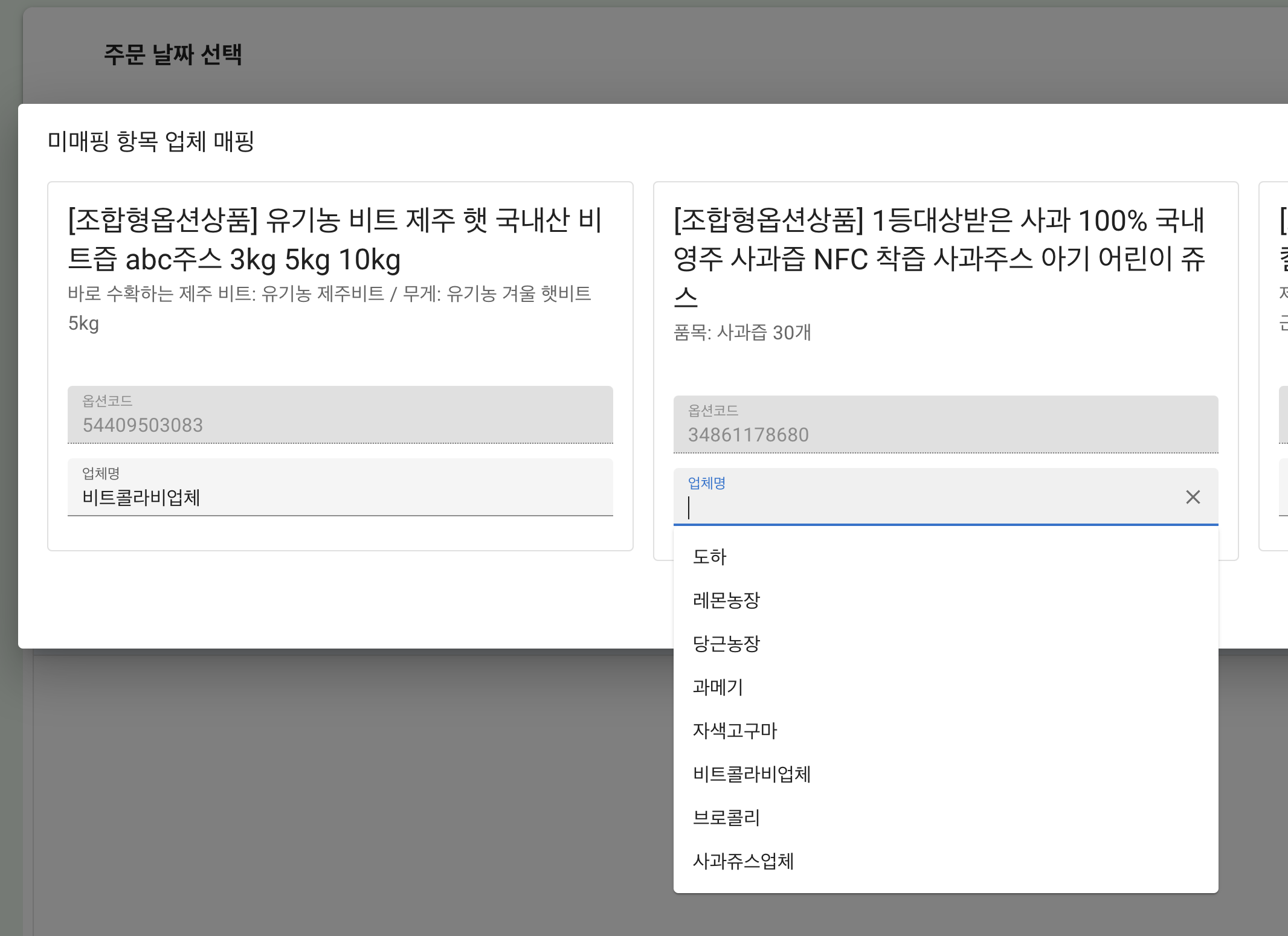 아래처럼 업체명을 수기로 등록을 하던지 혹은 골라서 매핑이 가능하다.