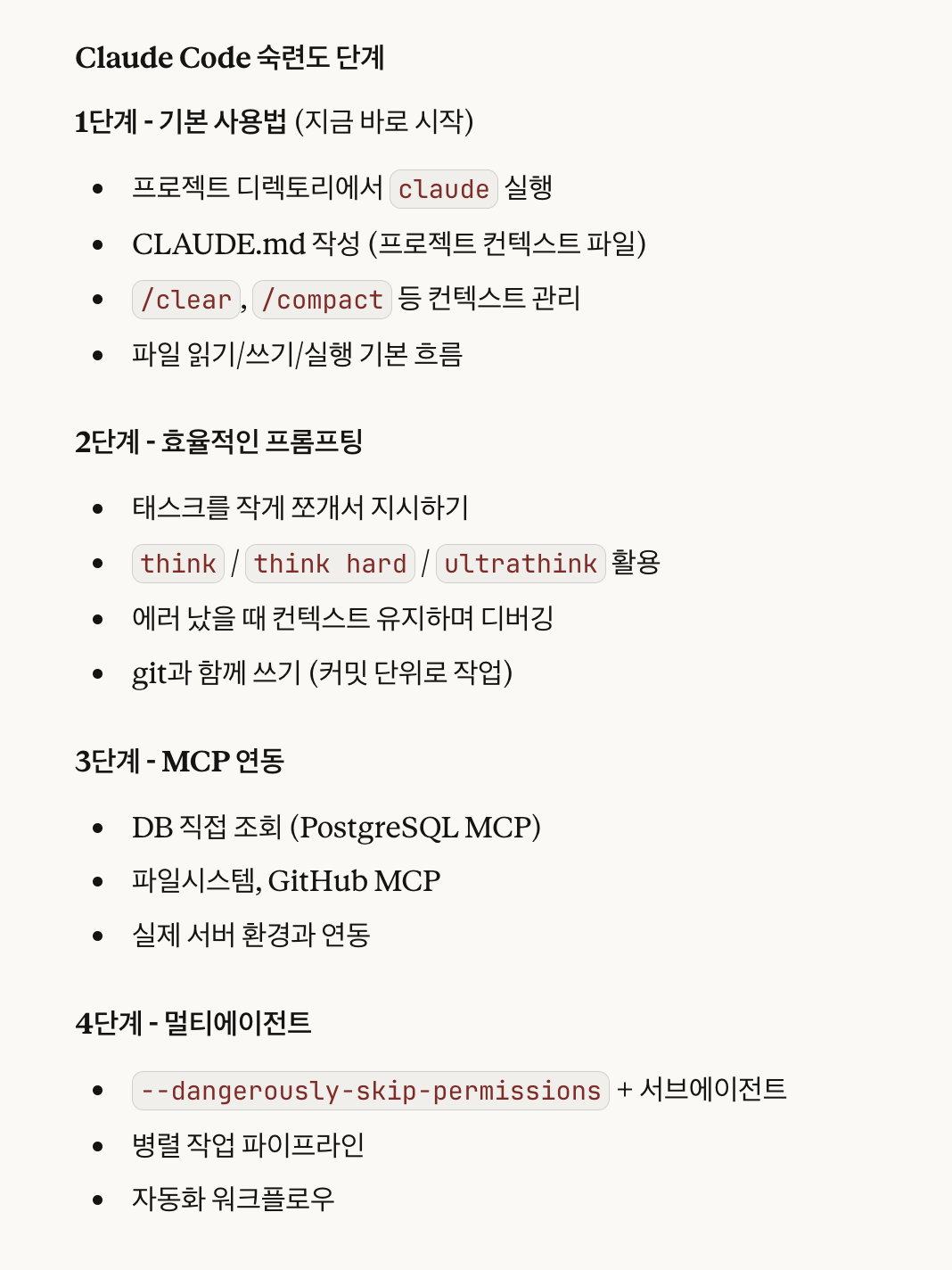 나는 어디까지 왔고 앞으로 무엇을 생각하며 Claude Code를 사용해야할까? 라는 고민으로 물어보았습니다.