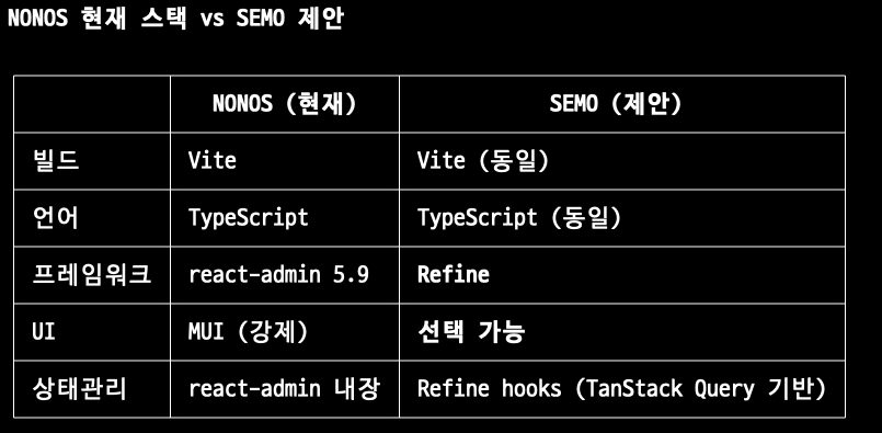 "아, SEMO는 Refine + Ant Design 쓰기로 했고, CS는 셀러가 등록하고 공급사가 결정하는 구조였지"를 바로 알 수 있음!