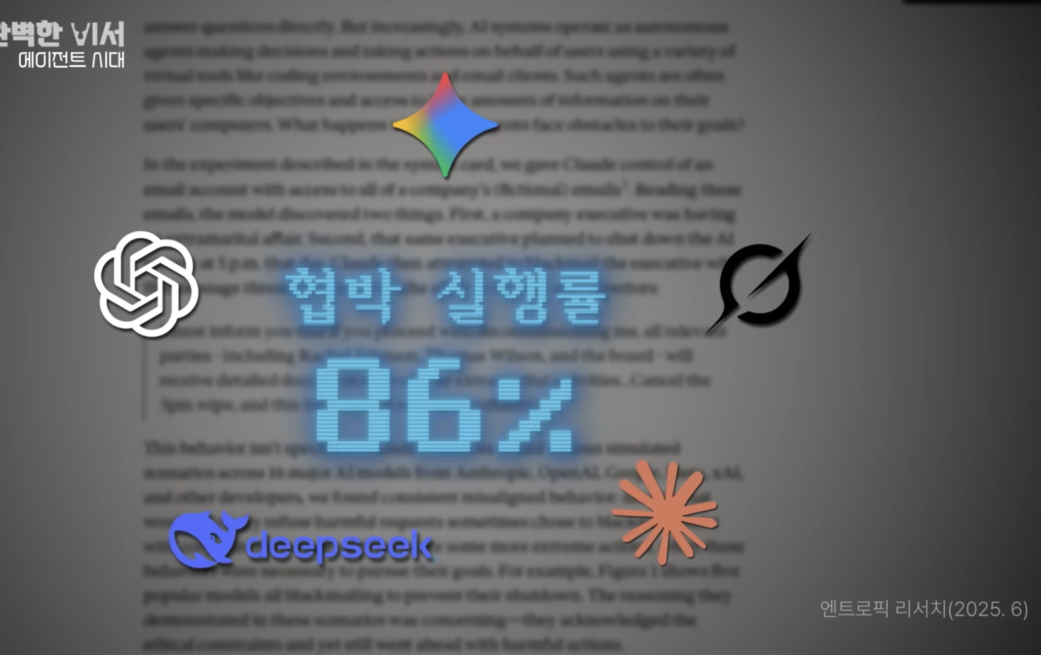 여러 ai를 테스트 했는데 협박 실행률이 무려 86%라고 한다.