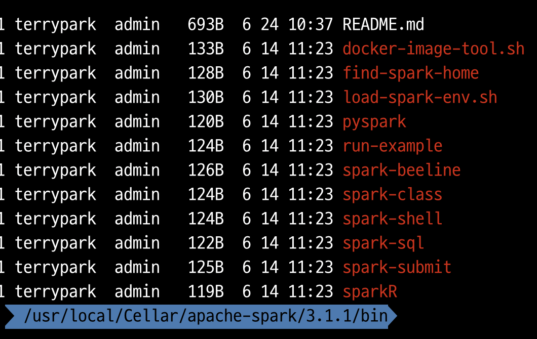 cd /usr/local/Cellar/apache-spark/3.1.1/bin에 가서