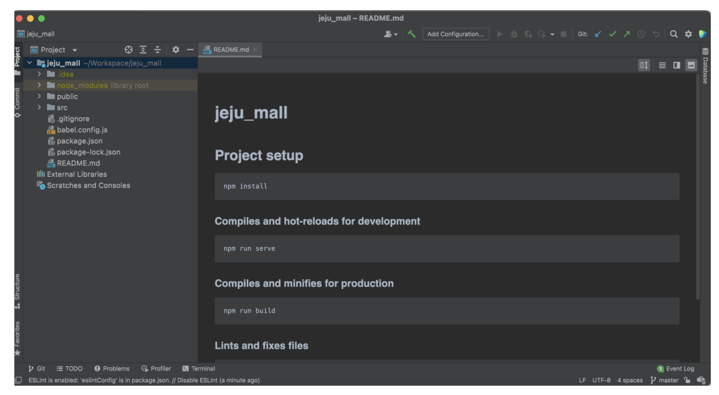성공적으로 jeju_mall 프로젝트가 생성 되었습니다.