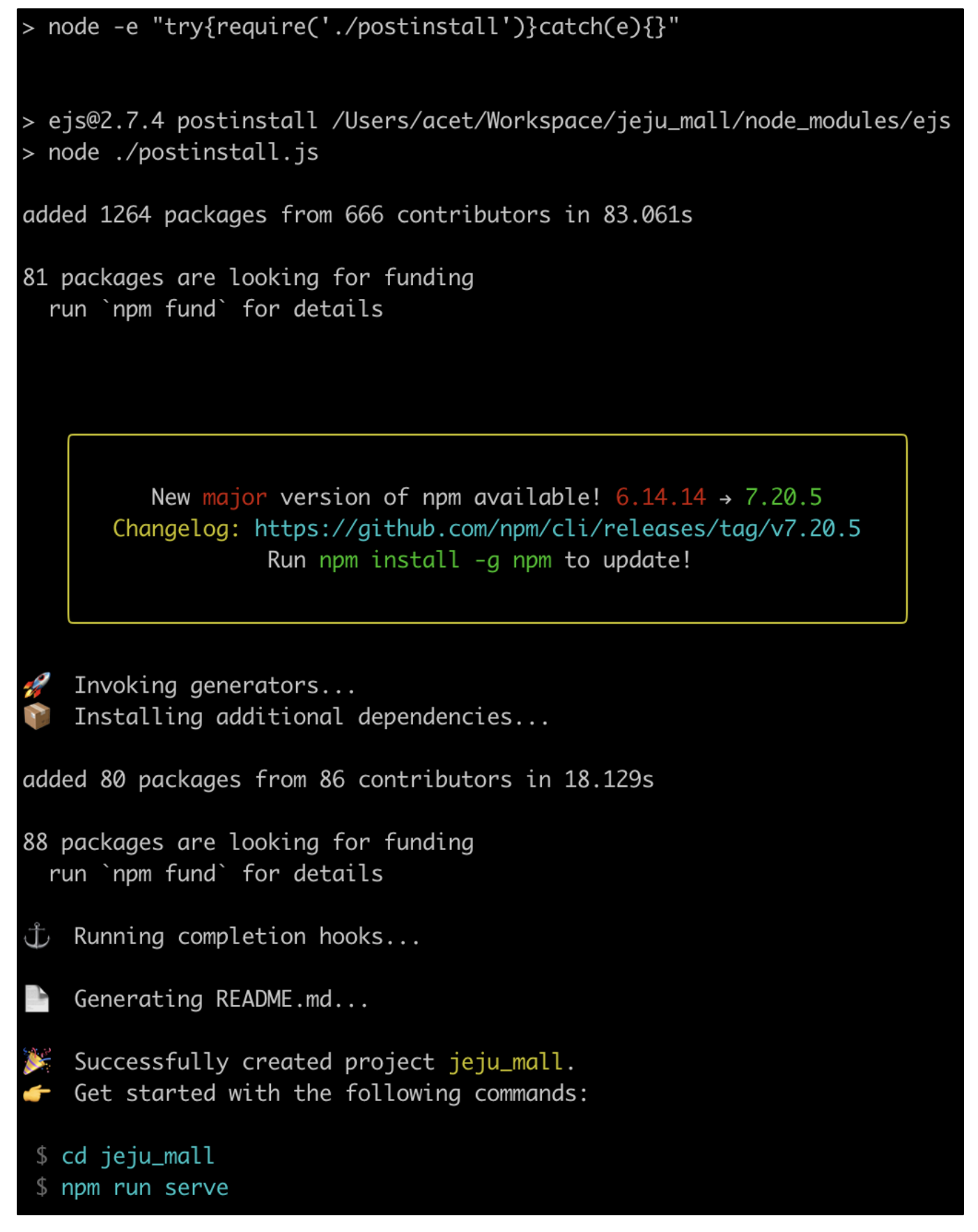 그래서 vue create jeju_mall로 진행!