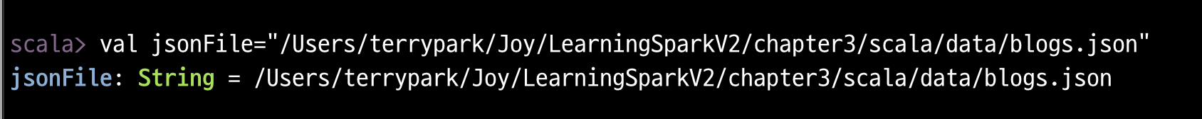 scala> val sf_fire_file ="/Users/terrypark/Joy/LearningSparkV2/chapter3/data/sf-fire-calls.csv"