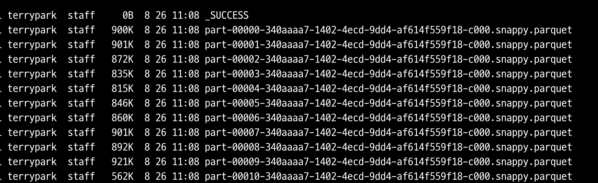 scala> fireDF.write.format("parquet").save(parquetPath)