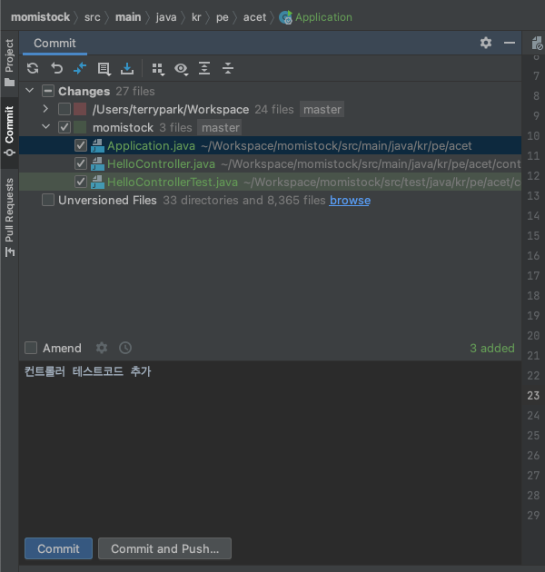 test code..! 책에서는 controller를 테스트하는것이 나온다.