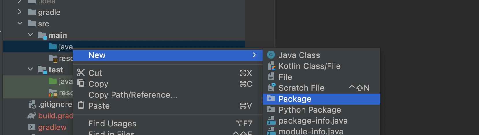 1. main과 test쪽에 동일하게 만들어 줍니다.
