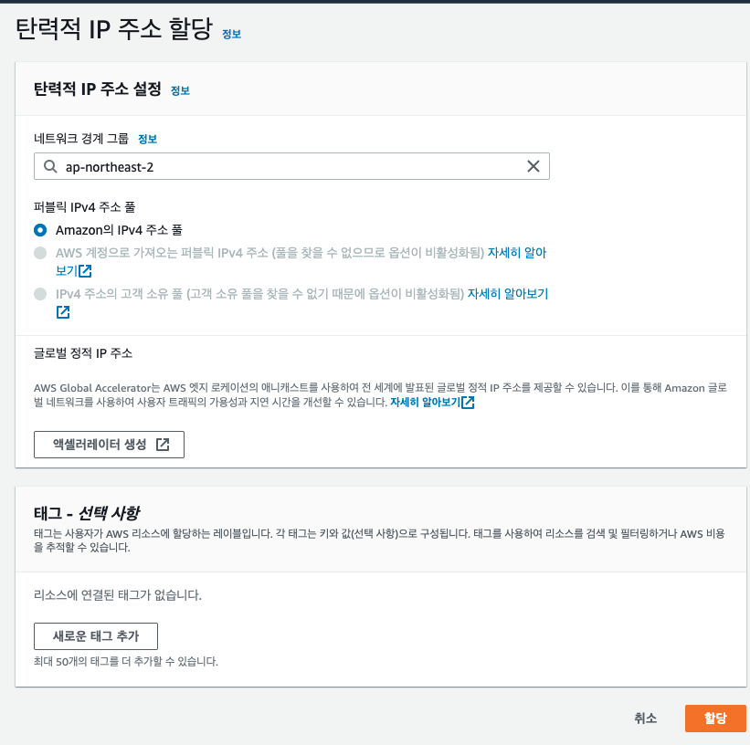 | aws 탄력 ip (public ip) 삭제하기 (2) | 2022.01.20 |