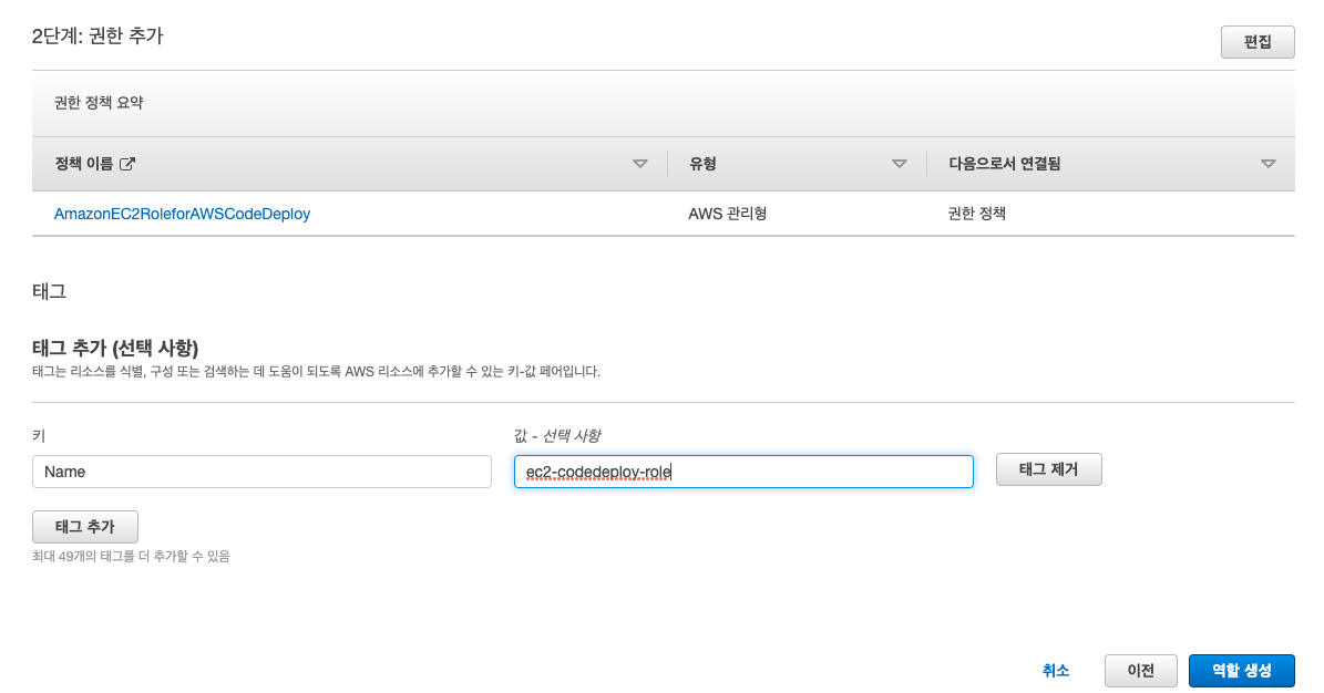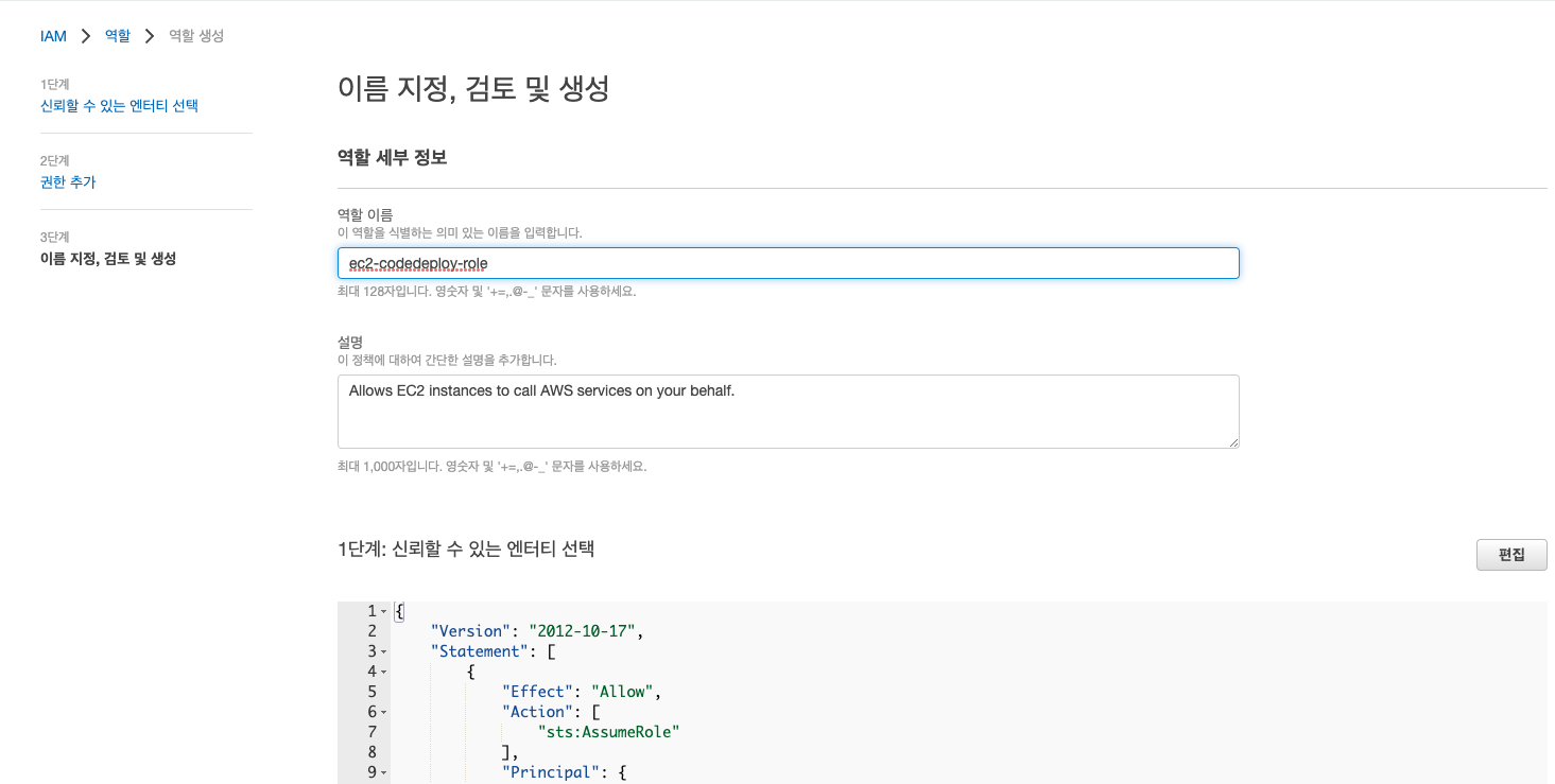 CodeDeploy에서 EC2를 접근하려면 마찬가지로 권한이 필요 합니다.