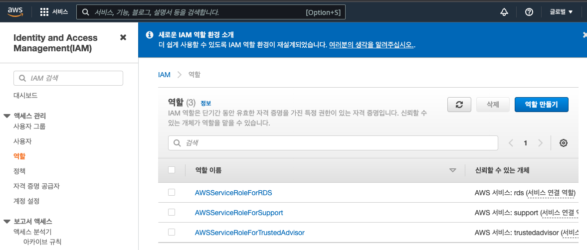 IAM에서 역할을 하나 더 만들어 줍니다.