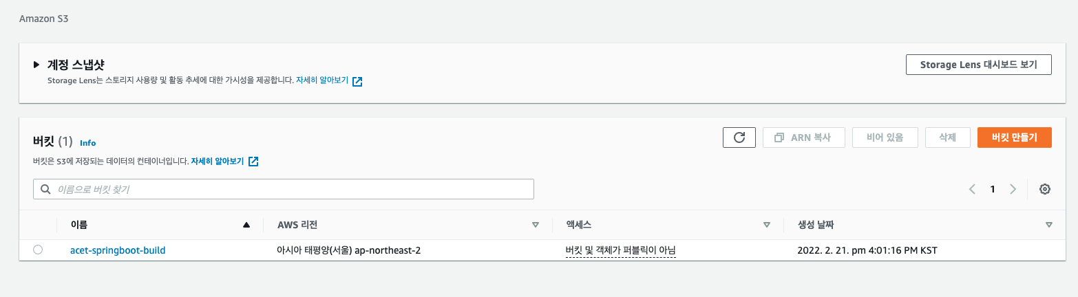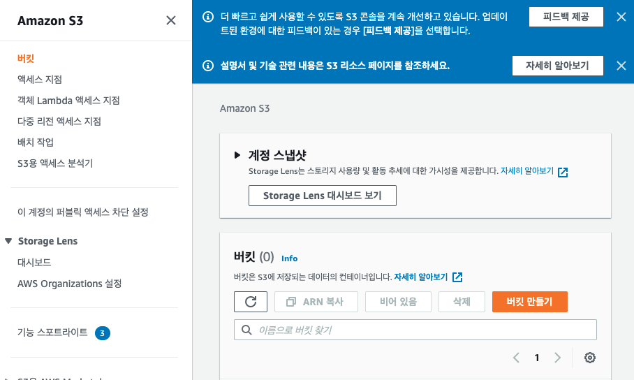 아래와 같이 버킷이 잘 생성됨을 알수 있습니다.