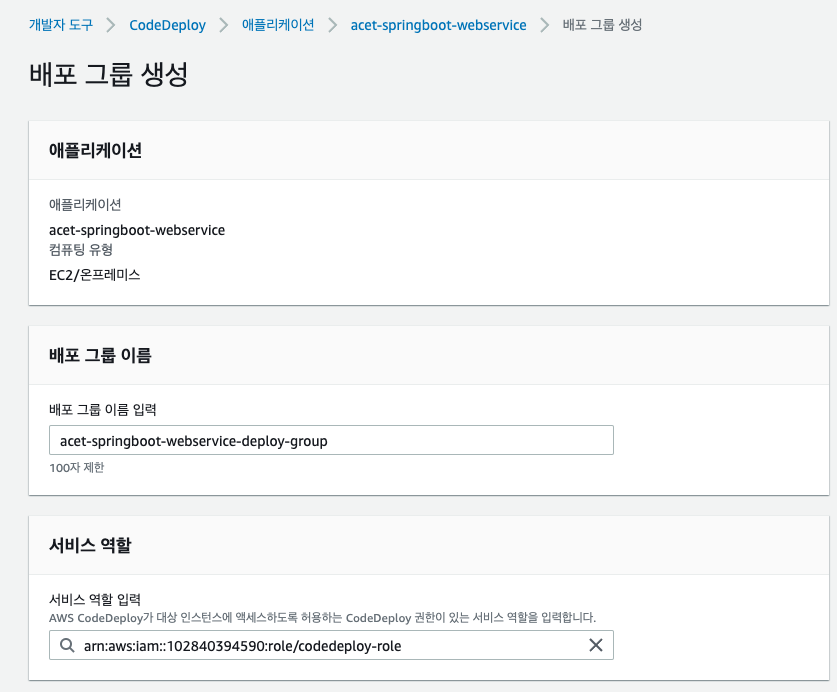 deployment_group: acet-springboot-webservice-deploy-group # 웹 콘솔에서 등록한 CodeDeploy 배포 그룹