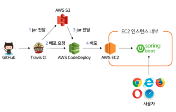 정리하면 Travis CI(빌드) - S3(잠시 저장) - CodeDeply(저장된거 가져가다가 배포) 이렇게 되겠군요