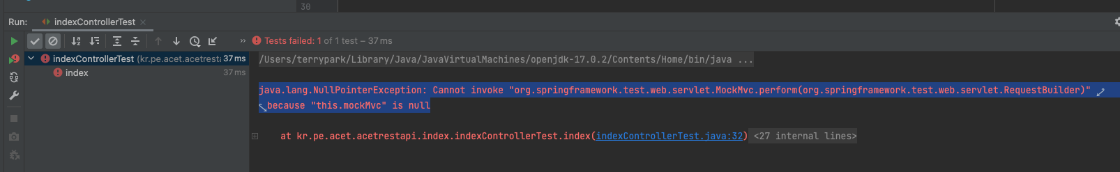 java.lang.NullPointerException: Cannot invoke "org.springframework.test.web.servlet.MockMvc.perform(org.springframework.test.web.servlet.RequestBuilder)" because "this.mockMvc" is null