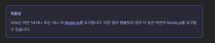vite의 요구되는 node.js버전은 아래와 같습니다.