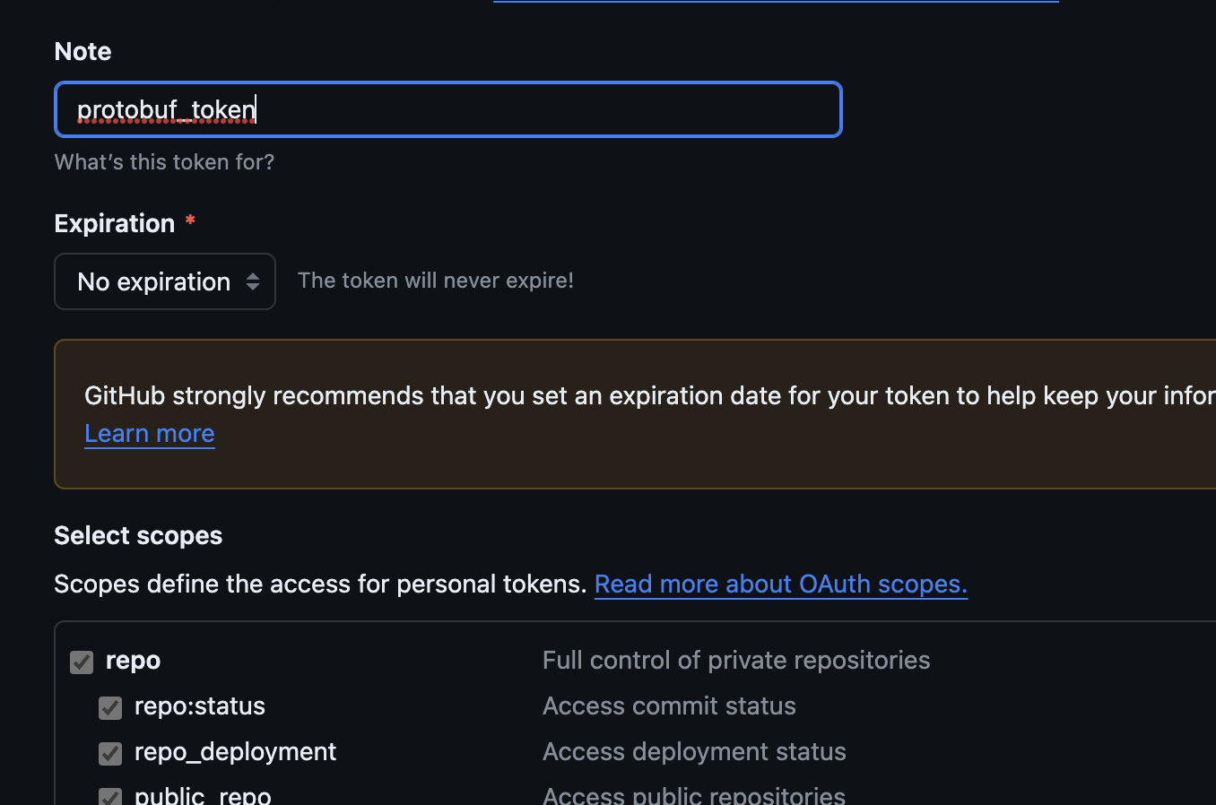 아래처럼 토큰을 만드시고 비밀번호에 넣어주시면 됩니다:)
