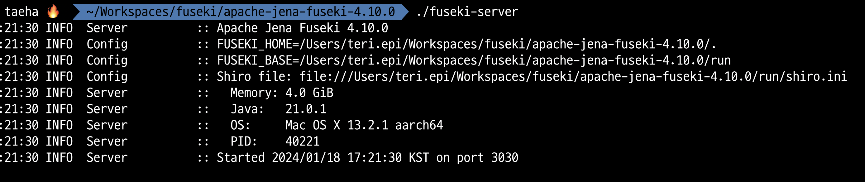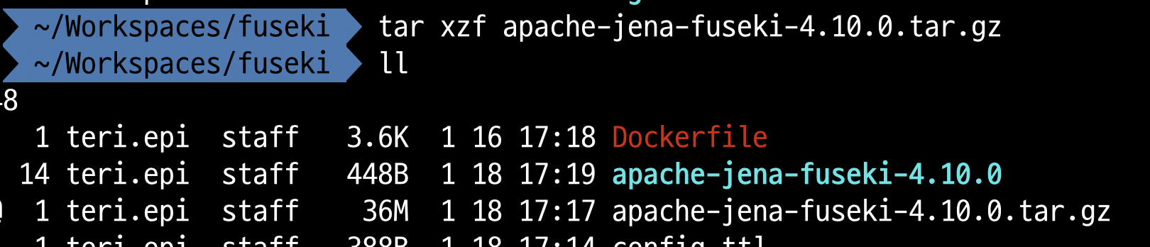 tar xzf apache-jena-fuseki-4.10.0.tar.gz 명령어로 압축을 풀어줍니다.