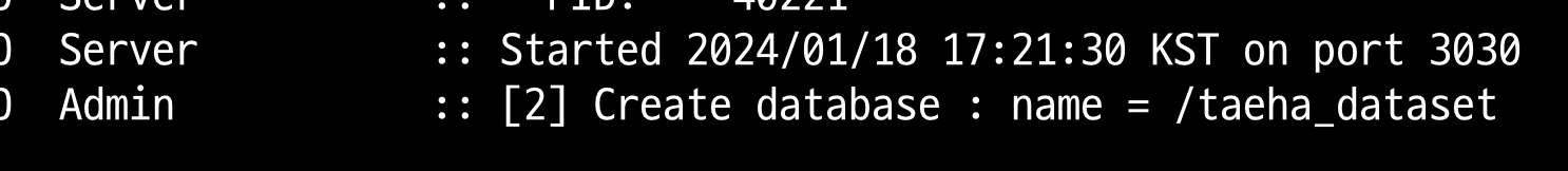 로그를 보면 아래와 같이 Create database를 했다고 나옵니다. goood~