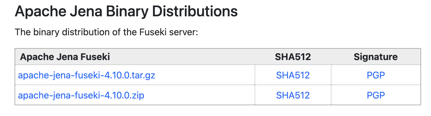 https://jena.apache.org/download/ 에서 fuseki를 다운받습니다.