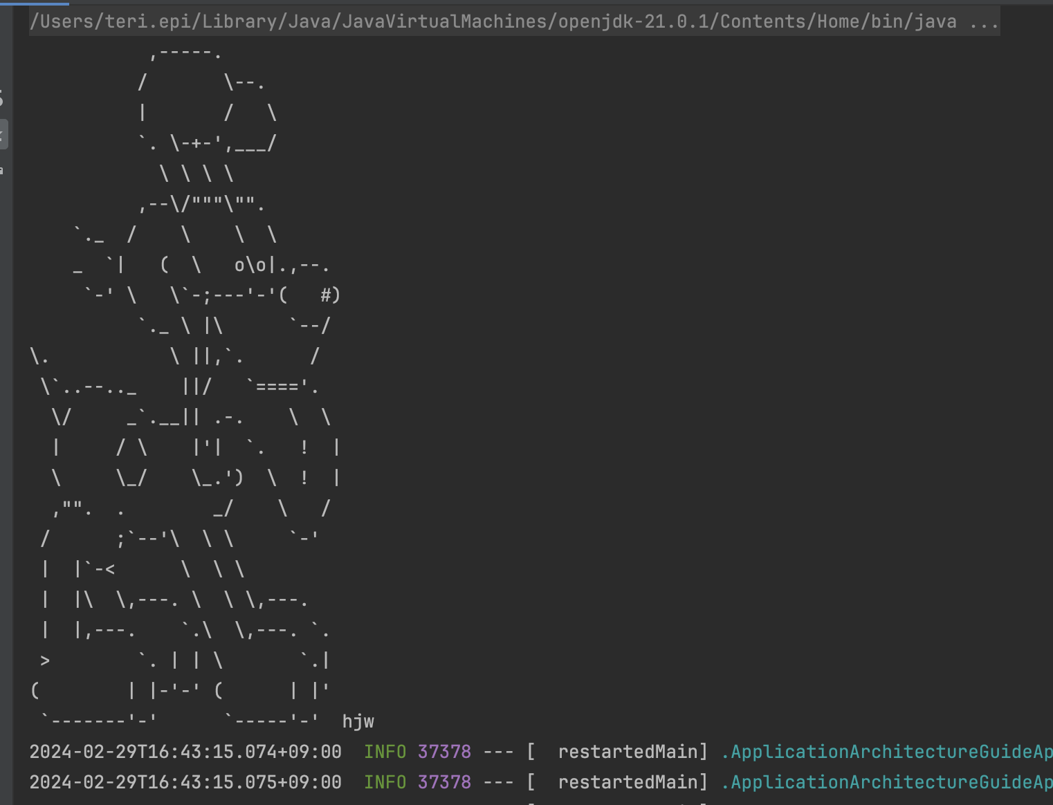 위처럼 나오려면 resources밑에 banner.txt를 넣으면 동작합니다:)