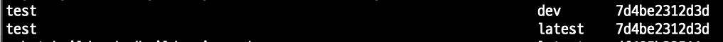 docker tag test:latest test:dev 명령어를 통해 test:dev를 만들어줍니다.