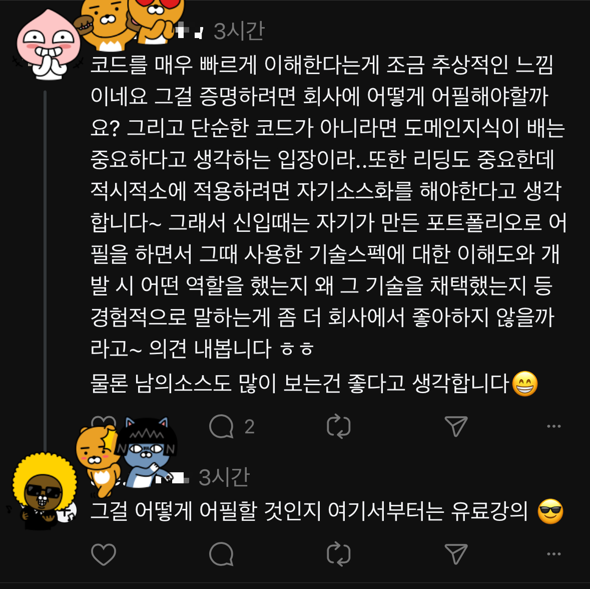 코드리딩을 어필하려면 오픈소스를 까본 경험이라던지 그 오픈소스를 통해 얻었던 경험이나 배운점