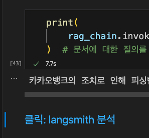 다음으로는 rag_chain.invoke를 통해 질의를 해줍니다.