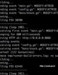 반응형 Language/go lang23 go lang - fresh를 사용해 보자. 이번 내용은 go get 이라는 명령어를 통해 Fresh 라는 것을 사용해 보자.Fresh is a command line tool that builds and (re)starts your web application everytime you save a Go or template file.저장 하면 바로바로 적용이 된다.https://github.com/pilu/fresh 에서 README.md를 참조! Installationgo get github.com/pilu/fresh 실행은 어플리케이션이 있는 곳으로 이동한 뒤에 fresh 라는 명령어를 쳐주면 서버가 기동 되어진다.fresh의 프로세스를 kill을할 때 유의 점으로는 fresh 말고도 runner_build라는것을 kill 해주어야 한다. 2017. 2. 15. go lang을 해보자. 링크를 통해 OS에 맞는 것을 다운 받는다. (https://golang.org/dl/)home에서 go dir를 하나 만들어준다.다운 받은 pkg를 클릭클릭 하여 셋팅해준다..bash_profile에 환경변수를 잡아준다. # GOPATH export GOPATH=$HOME/go PATH=${PATH}:/usr/local/go/bin:${GOPATH}/bin 5. go 라는 명령어를 통해 잘 깔렸는지 확인.Go is a tool for managing Go source code. Usage: go command [arguments] The commands are: build compile packages and dependenciesclean remove object filesdoc show docume.. 2017. 2. 3. 이전 1 2 다음 반응형