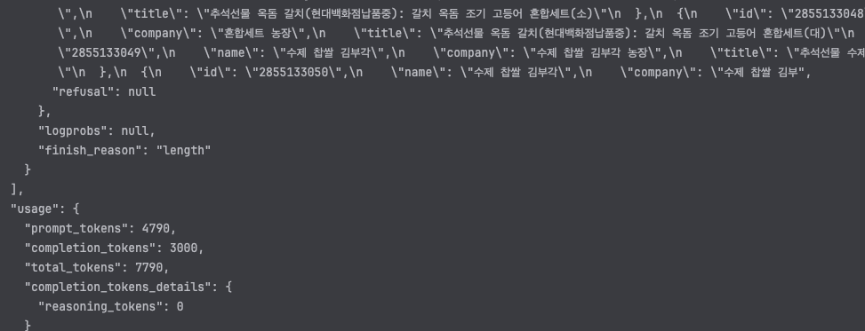 prompt_tokens는 4790인데 응답으로 3000 했더니..짤려서 나왔다.