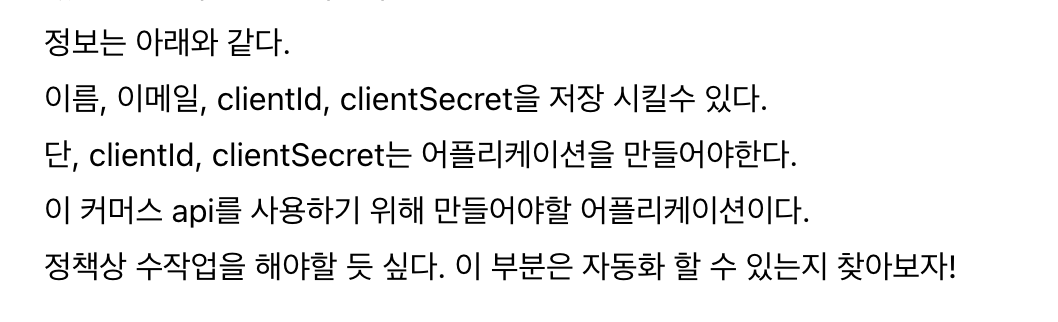 그리고 clientId와 clientSecret정보는 어플리케이션이라는것을 만든 후에 나오는 값들이라..