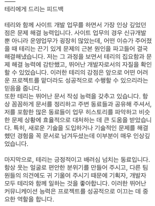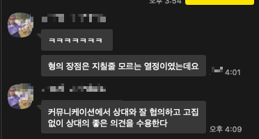 많은 피어들과 주기적인 일대일 미팅이 큰 도움이 됨.