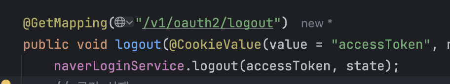 아래처럼 프론트에서는 백단을 호출하며 백단에서는 logout을 위해 accessToken과 state를 가지고