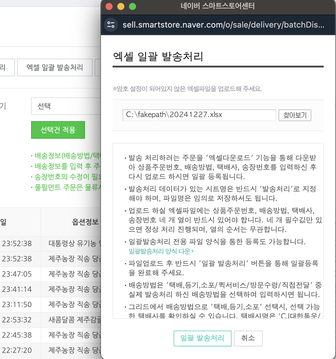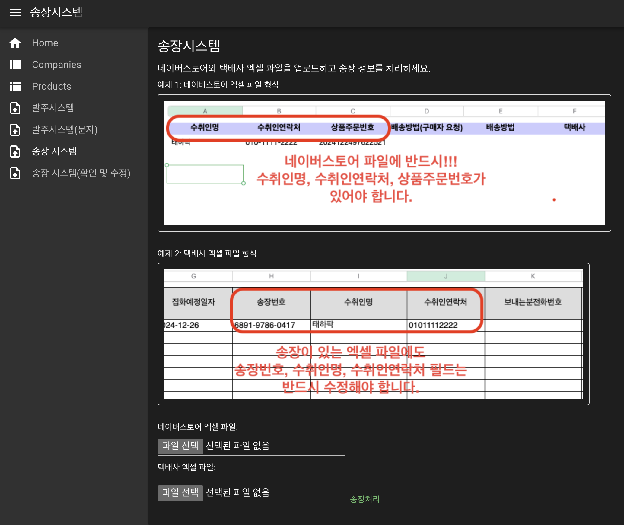 발주 시스템에 이어서 이제 송장을 받아서 네이버스토어에 일괄처리를 해줘야 합니다.