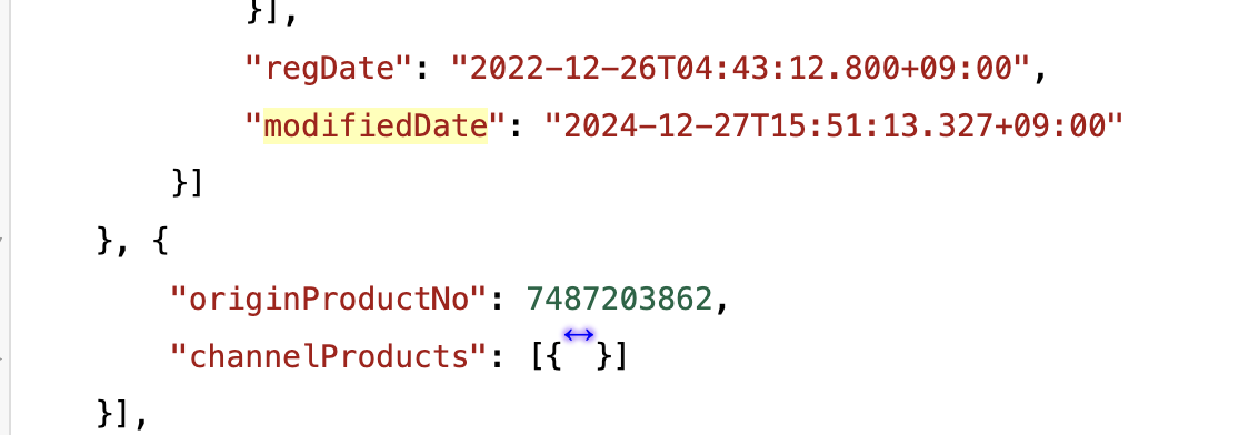 위에서 modifiedDate는 하위 상품인 채널상품들이 변경이 되면 변경이 됩니다.
