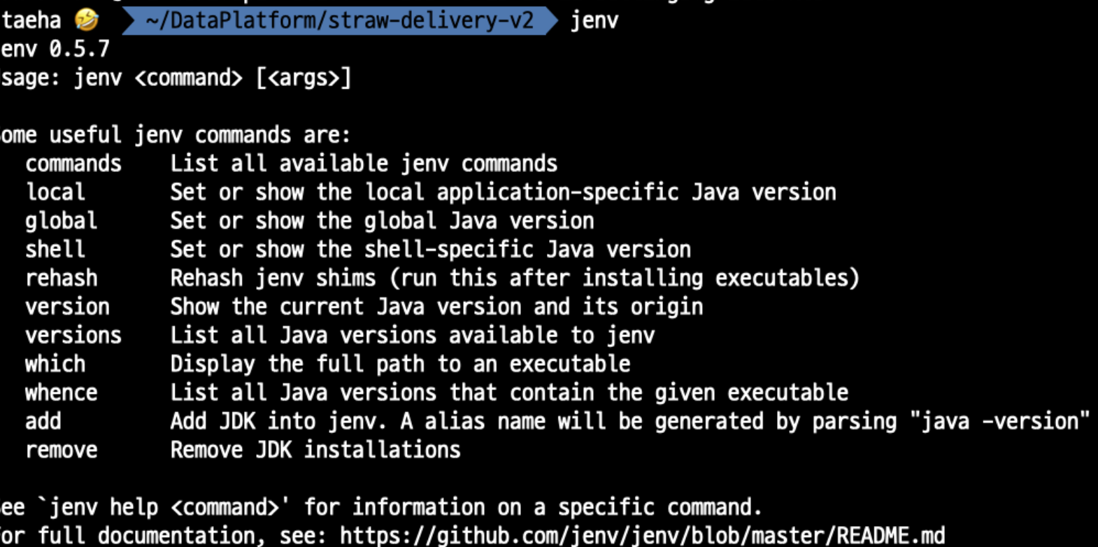 jenv에 등록이 안돼있으면 등록(add)을 한 뒤에 jenv local 21을 통해 버전을 연결 합니다.