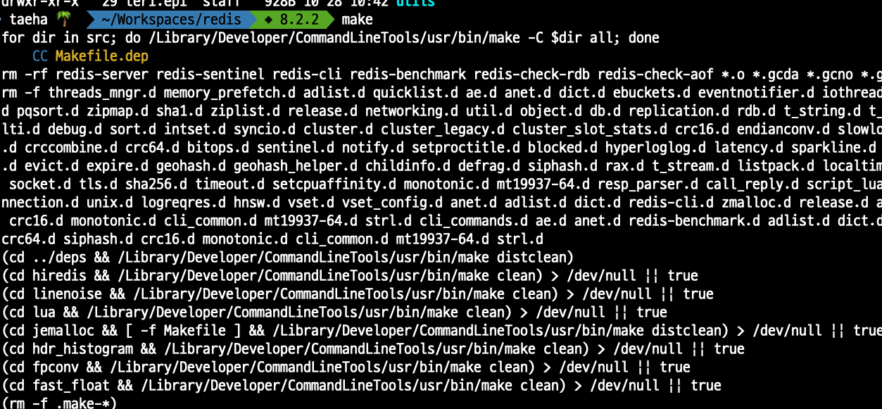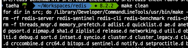 기존에는 뭐가 있었는지 make clean을 통해 초기상태로 돌리고 확인해보겠습니다.