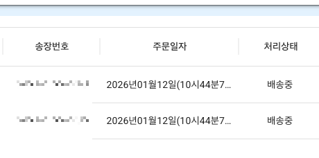 5) 완료 후엔 자동으로 배송중 탭으로 가며 처리 된 데이터를 확인할 수가 있다.
