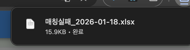 해당 실패 건들에 대해서 엑셀로 다운로드 받아서 확인을 할 수 있다.