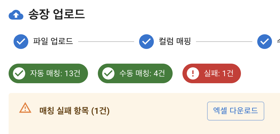 기존 네이버 엑셀 업로드 처럼 업체 미매핑 처리를 해주고 최종 확인하면 끝!
