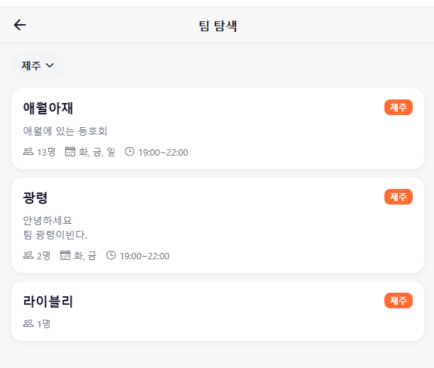 처음 팀 참가 페이지와 더보기에서 팀 탐색하기를 할 수가 있습니다.