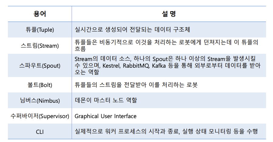 - Topology : Spout와 Bolt 들간의 흐름을 제어하는 부분! main 함수도 있다~