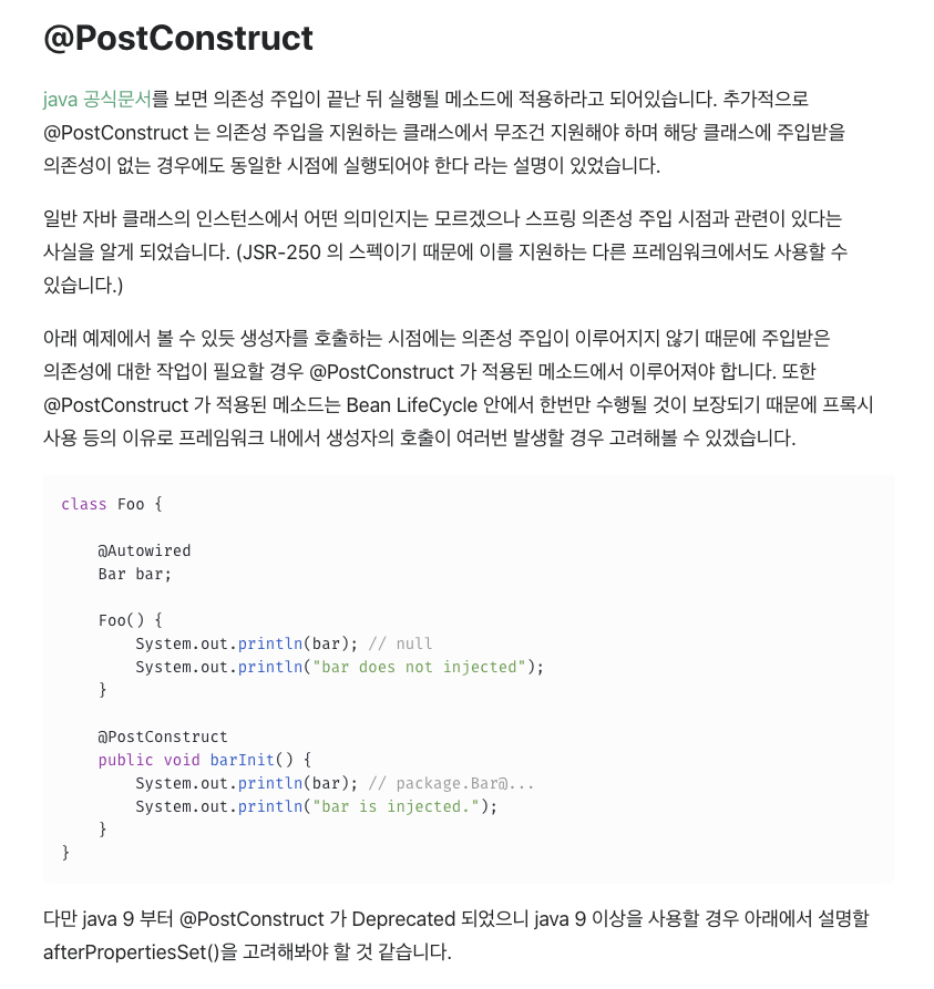출처: docs.oracle.com/javaee/7/api/javax/annotation/PostConstruct.html